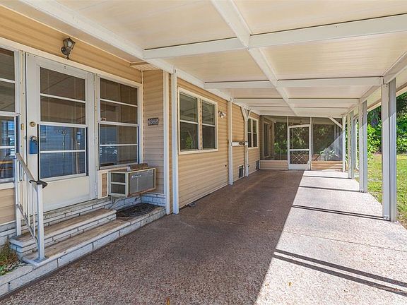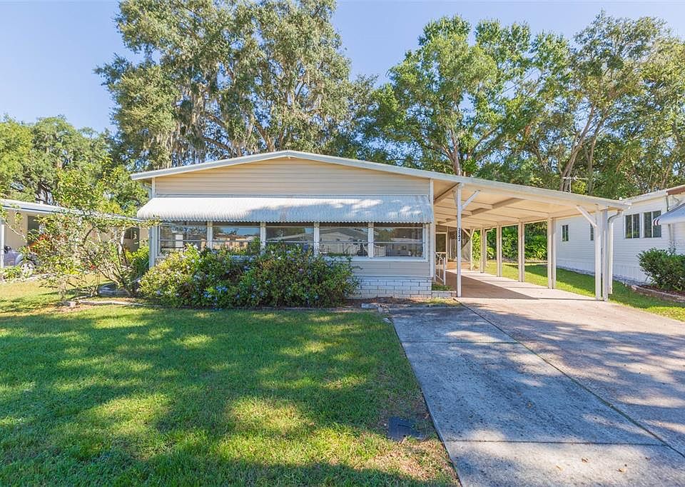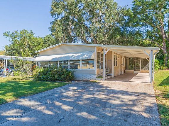 Retire in Florida on a budget! Welcome to Shady Oaks Mobile Home Community, an active 55+ age restricted community in Zephyrhills, FL. Park amenities include shuffleboard, community pool, and a vibrant clubhouse with a full schedule of activities. This 2bed/1bath doublewide mobile home is great affordable option for those seeking to own a 2nd home or to permanently retire in Florida. The floor plan offers a 10'x25' sunroom that is perfect for enjoying Florida's mild winters while entertaining friends or sipping on your morning coffee. A built in recipe desk and china cabinet are offered in the open style kitchen. NEW VINYL PLANK FLOORING was installed in 3/2025 making cleaning a breeze. Grill and entertain friends in the 12'x15' screen enclosed side porch. NO LOT RENT! You own the land. If you have a hobby or need extra storage you will love the attached shed and detached workshop. Shady Oaks community is conveniently located 4 miles from local hospital, less than 1 mile from Zephyrhills city limits, 35 miles from Tampa International Airport, 12.5 miles to local shopping mall, and 4 miles to local grocery stores or restaurants.