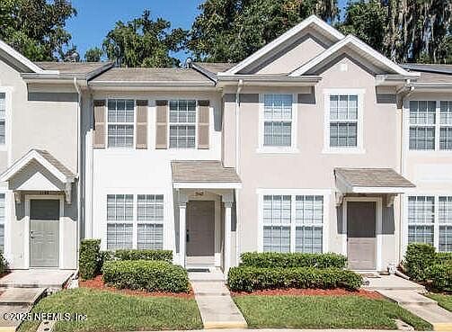 Charming Town Home in popular, gated Drayton Park. Nice laminate Living Room Floor, New Carpet, New Paint throughout. Private Wooded view from back porch. 2 BR, 2.5 Bath Townhome with eat in kitchen, breakfast bar, & living dining room. This family layout includes 2 master bedrooms upstairs, each with ensuite bathrooms. Separate laundry room. The central location is close to Tinsel Town/Town Center & is walking distance to shopping, restaurants, & parks. Convenient to major highways, downtown, & beaches. Easy walking distance to nice amenities including a clubhouse, community pool, fitness center, & walking trails. Nice screened patio with storage backing onto a preserve - giving privacy. There are ceiling fans in living area & bedrooms. washer/dryer. Drayton Park has a car care center! There is an HOA rule allowing a limit of 2 cars per household. HOA includes lawn maintenance, exterior maintenance, exterior pest control. Strong rental history or perfect homestead.