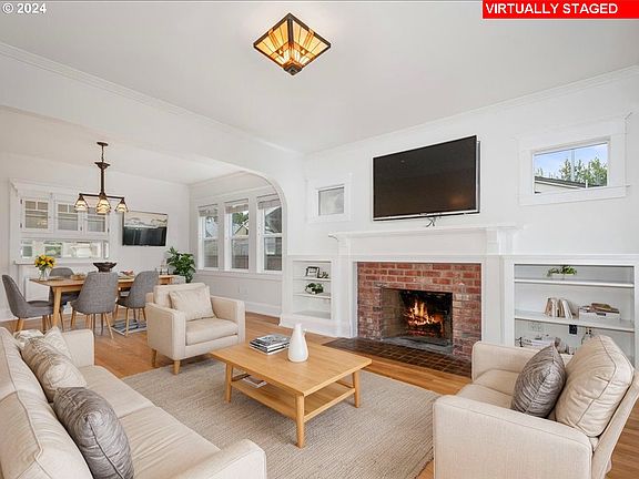 Classic Roseway Bungalow that combines classic allure with modern comforts. As you approach, be greeted by a welcoming front porch, perfect for morning coffees and evening relaxations. This home was remodeled down to the studs in 2007 and included an all new electrical system, plumbing, siding, roof, and 12 zone sprinkler system, plus completely rebuilt 2 car garage, amenities include forced air gas heat + central a/c and also includes double paned vinyl windows. Inside, discover a treasure trove of original features including built-in cabinetry and gleaming hardwood floors that exude warmth and character. The living space is centered around a cozy fireplace, ensuring comfort during those cooler Oregon evenings. The kitchen is a culinary delight with efficient gas appliances and ample storage, ideal for whipping up gourmet meals.This home boasts two full bathrooms and multiple rooms that adapt to your lifestyle needs. The finished basement is a true gem, featuring a versatile bonus room for hobbies or entertainment, plus an exclusive wine room for your collection. Outside, the double car garage and private driveway offer plenty of parking space, while the fenced backyard promises privacy and a safe haven for leisure and gardening. Don't miss out on owning this piece of Portland charm, where historical allure meets modern living. Schedule your visit today and come home to a place where every corner tells a story. Walk score 84 and bike score 97, Solid home. New back fence just installed and refreshed landscape. New in Sept 2024: Hot water tank, new upstairs carpets, new fresh interior paint. New back fence in July 2024. Staging items not included in sale- This could be where you start making memories