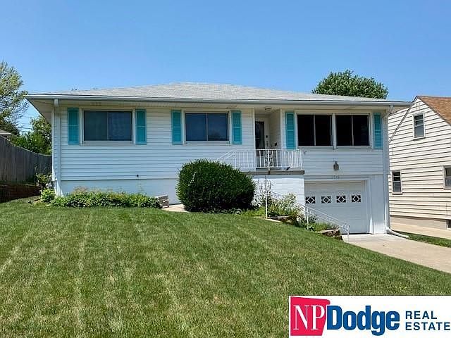 Contract pending. On market for backup offers only. Larger than it looks! Close to UNO, UNMC, interstate access & walking distance to 2-elementary schools! Main level has 3-BR's, full bathroom, Living room and Kitchen w/ large eating area! The walkout lower level has Family room, Bonus room, large storage room & 3/4 bathroom! Also has vinyl siding, updated vinyl clad windows, oversized gutters, garage has storage room, opener & built-ins, fully fenced yard w/ large deck & the washer & dryer stay!