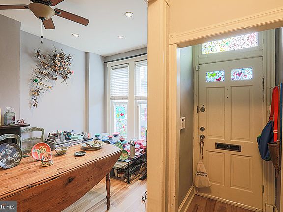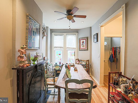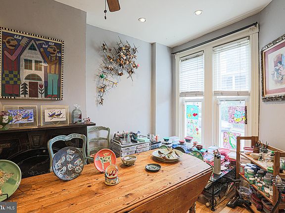 This artist's home is also a working studio. Located in the Hampden area of Baltimore, close to Roosevelt Park, this row house, according to tax records was built in 1880. So it is old and quaint but up to date. Check out the creativity of a working studio. Maybe I'm a bit partial to this ceramic/porcelain artist. The colorful stained glass kitchen counters are another touch by this artist/owner. This home is a charmer with its whimsy pottery display and stained glass adorning the windows. The first-floor laundry room also doubles as her throwing and kiln space. And the wheel spins, and the kiln fires the handmade pieces. You can see some of the art as you tour the house. Upstairs are three bedrooms and one full bath. Notice the claw-foot tub. And there is Central Air and warm gas heat. There is a patio in the back along with a fenced yard for pets and plenty of space for gardening.