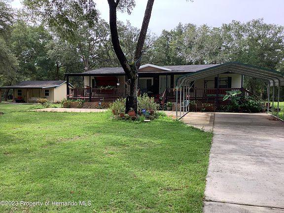 Beautiful 3.10 acres surrounds this large, spacious 4 bedroom, 2 bath split plan manufactured home. Enjoy your quiet time on your 10X52 front porch and relax or enjoy entertain on large covered 16X40 rear porch. Great for enjoying nature at it's finest! This home offers a large roomy kitchen with island and lots of cupboard and counter space. Master bedroom has large walk in shower and closet , double sink and garden tub ,The split floor plan allows for privacy. This home sits on a treed, park like setting with a 16X24 workshop, Excellent location very rural and little traffic, Close to rails to trails, Croom ATV motorcycle area, Withlacoochie State Forest, Silver Lake Campground, Weekie Watchie Springs and beaches, Minutes to I-75, Ocala, Tampa or Orlando