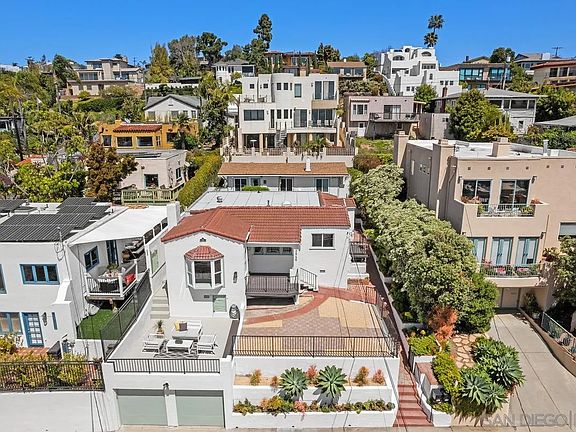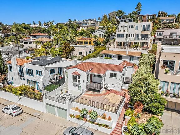 Rare opportunity in beautiful South Mission Hills. This harbor view property consists of a 2-bedroom 2-bath 1,200 sqft Spanish revival front house and an adorable 1-bedroom 1-bath 600 sqft cottage in the rear. Both homes sit on a lushly landscaped raised lot with views to the harbor and Point Loma. Recently remodeled with tasteful upgrades, the front house has a 9 foot high coved ceiling in the entry living room and windows galore that offer naturally lit spaces and endless views. A brand new kitchen, stainless steel appliances, refinished original wood floors, new fixtures and lighting, and refreshed baths are just a few of the recent updates. Private outdoor areas include 2 patios as well as a spacious front deck and newly dryscaped yard to entertain and relax on while taking in the views. The charming cottage is set towards the back of the lot and offers its own private deck and side yard surrounded by succulents and flowers. Both homes have new roofs, new paint, upgraded electrical, and several new windows. There’s plenty of storage on the property and a two car garage located on the street level. Short walk to the bars/restaurants on India St or a 3 minute drive to Mission Hills entertainment district.