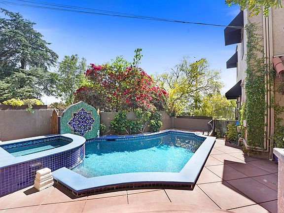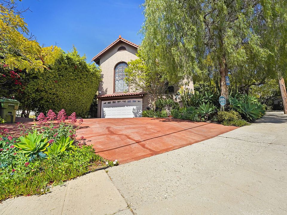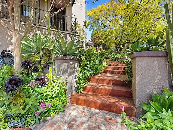 Nestled in the lush hills of Silver Lake, this garden oasis offers the perfect blend of serenity, style, and city views. Tucked away on a quiet, charming street, this 3-bedroom, 2-bathroom home is a peaceful escape while still being minutes from the best of LA. Outside, unwind in your private heated pool with a stunning custom tile mosaic or soak in the jacuzzi surrounded by lush landscaping. Solar panels keep energy costs down. Step into a sun-drenched living room with soaring vaulted ceilings, gorgeous hardwood floors, built-in shelves, and a cozy fireplace. The spacious eat-in kitchen features a double oven range, perfect for the home chef. Upstairs, the luxurious primary suite boasts a private balcony with panoramic views of the citysunsets here are truly unforgettable. A bonus room attached to the two-car garage offers the perfect space for a studio, gym, or home office, and a washer and dryer are included for added convenience. Tenant is responsible for all utilities, while the landlord covers pool and landscaping maintenance. Pets will be considered with owner approval, with a maximum of two allowed. A one-month refundable security deposit is required.