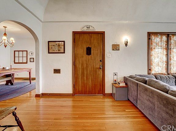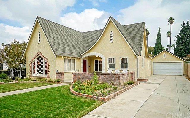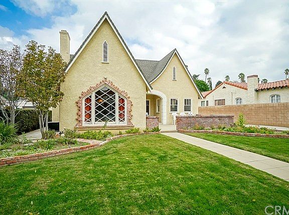 Ultra charming Tudor style on one of the most desired streets in the historic "Wood Streets" neighborhood, complete with front courtyard with brick accents and curb appeal that is off the charts! New plumbing and electrical, two bedrooms, 2 full bathrooms, office, large living room with tray ceiling and gas/wood fireplace, formal dining room with coved ceiling, new kitchen with breakfast nook, master bedroom suite with new bathroom with claw foot tub and separate shower, as well as refinished hardwood floors throughout this lovely home. There are pull-down stairs to the attic which boasts about 1,000 usable square feet for additional living space if needed. Walk-in closets in each bedroom, new paint inside, and brand new exterior paint! Brand new tankless water heater and the roof is about 7 years old. Basement is accessible from inside and could be used as a wine cellar or extra storage. Automatic sprinklers and drip system in front, and backyard is landscaped with a beautiful gazebo, completely enclosed with slump stone privacy wall, and the cutest little play house in the far back corner of the yard. And to round out this too-good-to-be-true scenario, there's a detached 2-car garage with automatic roll-up door, and RV parking. This home is registered with the City of Riverside as Structure of Merit #742.