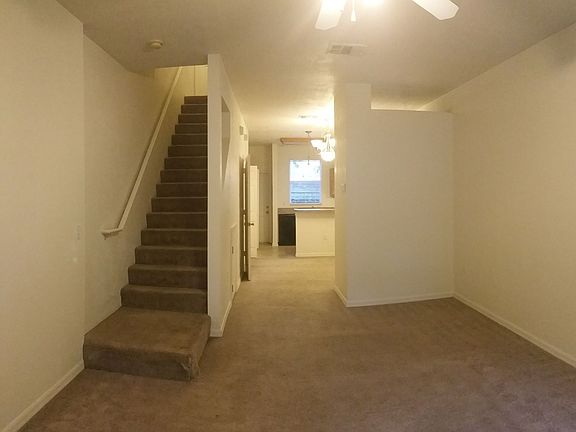 2 Bed / 2.5 Bath town-home with 1,114 Sq. Ft. This two story unit has bedrooms with full baths upstairs, and the living, dining, kitchen downstairs. Other features include high ceilings throughout, half bath downstairs, and a washer and dryer (included but not warranted). Kitchen appliances include Dishwasher, Disposal, Refrigerator, and Range.