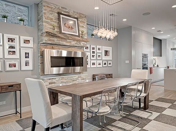 Outdoor brick fireplaceSpacious layoutsEnhancing natural lightSleek cabinetryArtificial turfRaised garden bedsOne-way tree-lined residential street