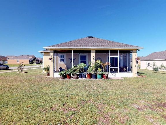 Gorgeous move in ready home! This spacious one story home is located in the Town of Dundee and has been loved by its current owners. This large corner lot sits high on the ridge with amazing, unobstructed views from the backyard and lanai. The landscaping captures your eyes with all the palms, magnolia and other lush plants, easily maintained by an automatic irrigation system. The kitchen offers plenty of cabinet and counter space a cozy breakfast nook, granite counter tops, high ceilings, elegant dark appliances as well as lots of natural light. Next to the kitchen you will find the inside laundry room Enjoy many hours of family bonding in the ample family room, completely tiled with an elegant ceiling fan and double sliding doors out to the large, concrete, covered and screened lanai with stunning views that will never be obstructed. The lanai is also fitted with electric, water and paddle fans The master suite has beautiful tray ceiling with fan and complete with walk-in closet, garden tub, dual sinks and mirrors. Updated light fixtures throughout this home are included as well as three additional good size bedrooms with ceiling fans and large closet space This is truly a gem of a home! The location couldn't be better, set in a pastoral, quiet location in the Town of Dundee, this home is close everything, just a few short minutes away from shopping, dining, medical facilities schools and much more. With plenty of room to grow this will make the perfect home for a growing family!