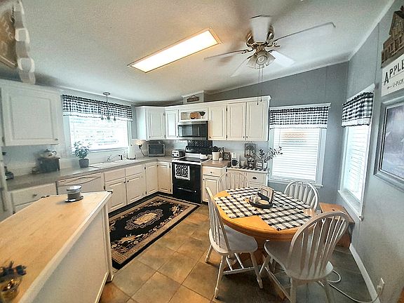 HIGHLY MOTIVATED SELLERS - EXCEPTIONAL BUYER INCENTIVE!!Make a competitive offer and the sellers may cover up to 6 months of base lot rent for the buyer.Nestled on a scenic golf course lot framed by majestic oak trees, this beautifully upgraded home offers tranquility and style. Step into a ceramic-tiled foyer that leads to a renovated kitchen featuring white cabinetry, black hardware, and a cozy dinette with serene views.The formal dining room flows into a spacious living area and a screened-in porch perfect for relaxing or entertaining. The primary suite boasts elegant wainscoting, a custom headboard wall, and stunning golf course views.Additional highlights include a welcoming guest bedroom, stylish guest bath, and a spacious double carport.This gem is priced to sell schedule your showing today!