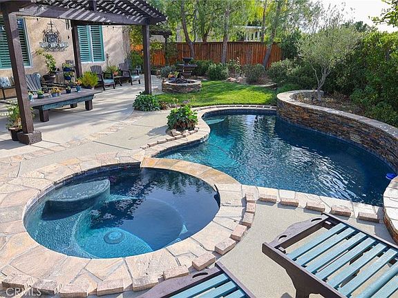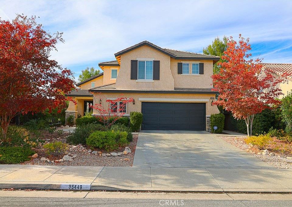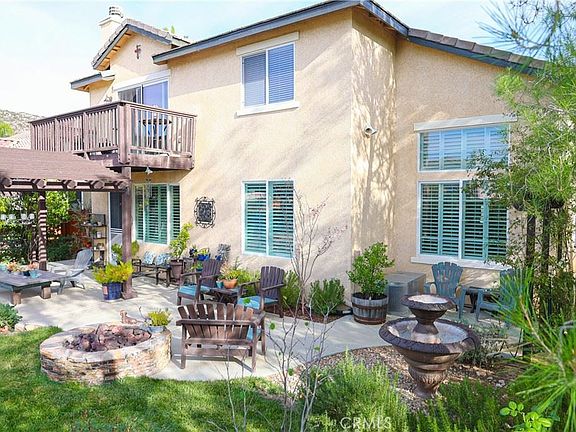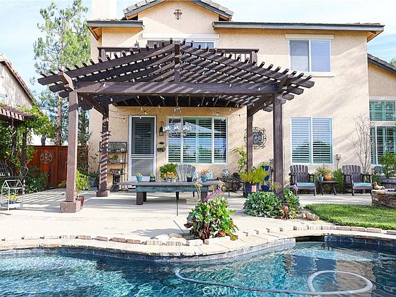35449 Oro Ct is nestled in an exceptional neighborhood of the Ridge community of Wildomar with stunning natural surroundings. This property is located on a Cul de sac with easy access to the freeway. This well-maintained move in ready home Features 4 bedrooms, 3 full bathrooms with a loft. 3 bed and 2 bath upstairs, 1 bedroom and bathroom downstairs. Master bedroom has an attached ensuite, and a balcony with views of the Santa rosa mountains. The backyard features a pool, spa and a gas firepit with covered patio and mature grapevines. Shutter blinds throughout the lower level and low maintenance drought tolerant landscape on drip system and 12 solar panels help keep energy and water bills low. Low HOA fees. Whether you are a young professional, a growing family, or a retiree, this neighborhood has something for everyone.