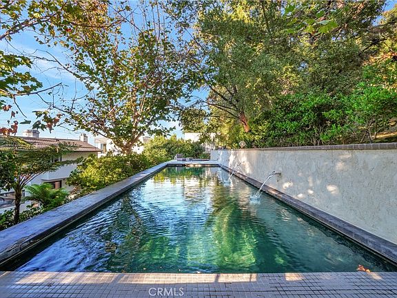 The private backyard retreat features a sparkling pool and jacuzzi surrounded by lush landscaping and tranquil vistas. Whether you're hosting a large gathering or enjoying a quiet evening under the stars, this outdoor space epitomizes California living.