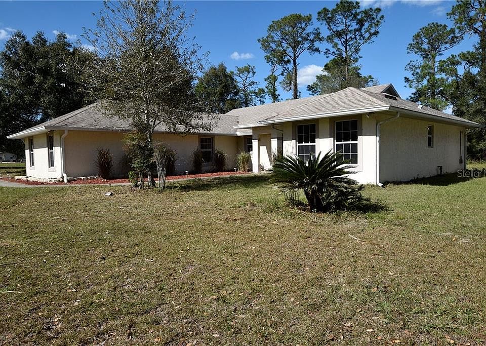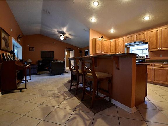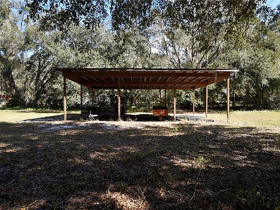 Bring the dogs and horses. Let everyone play outside. Barbecue around the screen enclosed covered lanai. Hear the birds singing, the raccoons chittering and the owls hooting. Bask in the peace, serenity and natural bliss of this country setting. When home includes 5 acres of wide open spaces, a workshop that is 1,950 square feet under roof, an efficiency apartment, a pole barn for picnics and parties, a detached garage for equipment storage and a well house that protects vital equipment the homeowner has everything imaginable to support a luxurious rural lifestyle. Add a beautifully appointed 3 bedroom 2 bath home featuring gorgeous natural wood cabinets, solid surface countertops and integral sinks to the equation. The sum of these amenities, concisely described, is paradise. Plentiful storage space is an essential component of an orderly lifestyle. The kitchen is loaded with storage space. Pull out drawers make storing and retrieving kitchen utensils quick and easy. The two walk in closets in the master bedroom are each equipped with built in storage. The master bathroom includes a large linen closet. Country living requires space for outdoor storage, too. The outdoor workshop is an enormous supply of flex space where everything can be done. There is plenty of space for lawn tractors and tools in the outdoor workshop. The workshop includes a 200 square foot locking storage room and a 480 square foot air conditioned efficiency apartment. The pole barn and the garage storage complete the vision.