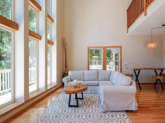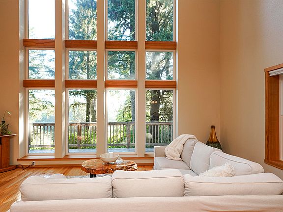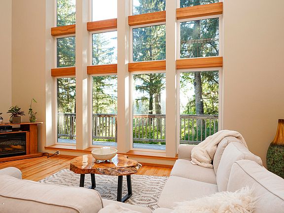 This exquisite residence features expansive cathedral windows that frame breathtaking views of the surrounding forest and the Pacific Ocean. Designed with both comfort and luxury in mind, the home seamlessly blends with its serene environment, providing a perfect retreat from the everyday hustle.