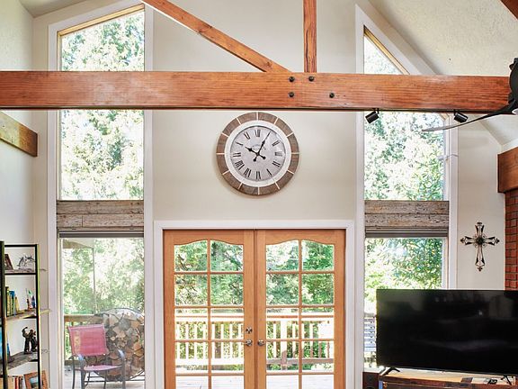 This beautifully updated single-level home blends Northwest character with modern comfort. Inside, you’ll find soaring 17-ft cathedral ceilings, exposed 10-inch timber cross beams, and a spacious open-concept great room that ties together the living, dining, and kitchen areas. A solid Sapele wood front door sets the tone as you enter the vaulted main living space.A rare second master suite is a standout feature, offering its own private exterior entrance, French doors, and a dedicated front deck—ideal for guests, multi-generational living, or a private office. This suite also opens to a large cedar back deck with warm evening lighting and plenty of room for outdoor dining or relaxation.The property includes a fully fenced backyard, recently improved with new cedar fencing, wide double gates, fresh gravel paths, and mature trees. The long-standing fence line extends beyond the surveyed north boundary and has created a spacious and established outdoor area for more than a decade. Terraced landscaping, natural rock accents, and two impressive cedar trees add a peaceful, wooded feel that’s difficult to find in town.Interior details include timber rafters, a tile-top kitchen bar, abundant cabinet storage, a reclaimed-wood sliding barn door, and updated bathrooms—including a curved-glass shower. This home offers the perfect blend of character, functionality, and outdoor living in a desirable Gresham neighborhood.