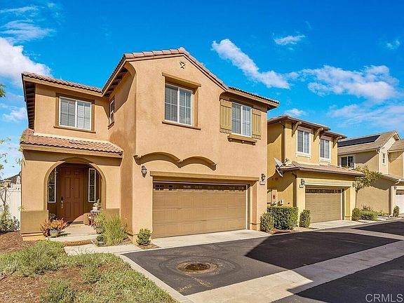 Step into your dream home! This captivating corner lot residence boasts a spacious and inviting open floor plan that exudes elegance and comfort. With 4 bedrooms and 2 full baths on the upper level with half bath on lower level, including a generously sized master suite thoughtfully positioned for maximum privacy, this home offers the perfect blend of space and tranquility. The heart of this abode is a kitchen that's not just bright, but positively radiant, thanks to its abundant natural light. Gleaming quartz countertops and a gas stove create a culinary haven that's as beautiful as it is functional. But that's not all – there's a whole-house air purifier that goes the extra mile, eradicating even COVID germs for a worry-free, healthy living environment. Outside, you'll discover a low-maintenance backyard, featuring lush artificial turf and automated sprinklers gracing a backdrop of charming succulents. And if you thought it couldn't get any better, prepare to be amazed by the whole-house solar system that will significantly reduce, if not eliminate, your electric bills. The home has a tankless water heater, both upstairs bathrooms have dual sinks and every room has fire sprinkler. Also the home is equipped with TAEXX built-in pest control system. As part of a master-planned community, you'll enjoy an array of amenities that enhance your quality of life. From playgrounds to two sparkling pools, a welcoming clubhouse to BBQ areas, and a network of picturesque walking and hiking trails, minutes to Pala Golf Course, every day will feel like a vacation. Your new home is more than a place to live – it's a destination where you'll create a lifetime of cherished memories.