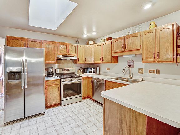 Original owner offers this spotless 2-step ranch backing up to the Crete bike/hike trail. Enjoy easy access from the covered entry to the front door free of snow and weather. Fully fenced back yard including 18' x 15' deck and 12' x 10' storage shed. Eat-in kitchen with SS appliances, breakfast bar & pantry opens to the main level family room with vaulted ceiling, floor to ceiling brick fireplace & double patio door overlooking the back yard. Open staircase off kitchen leads to basement with above grade windows inviting the sunshine in. Shining oak trim, doors and vanities throughout. 1st floor laundry. 1/2 bath off laundry room. 2-steps up to 3 bedrooms and 2 full baths. Skylights draw light inside. Master bedroom with private full bath. Lots of recent improvements including exterior house paint (2018), roof tear off (2019),landscaping upgrade (2018), furnace & water heater (2020), garbage disposal & kitchen sink (2021), replacement window glass (2020), driveway (2019), GDO (2019), battery back up sump pump (2021), LR carpet (2017), bedrooms carpeting (2019), & laundry tub (2018). Pull down ladder to attic storage in garage. When and if the house needed anything this meticulous owner took care of it. Move-in condition here! Seller will provide existing plat of survey.