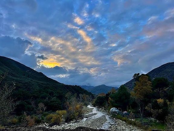 Beautiful large private A-frame home on many acres in Matilija Canyon, Ojai, California. Available starting October 1, 2024 The main house has two stories and four bedrooms and two bathrooms. Two bedrooms downstairs with kitchen, dining area, living room with wood burning stove and two more bedrooms upstairs which each have a deck and glass sliding doors looking out on the river and gardens on one side and the mountains and canyon on the other with 1 bath upstairs as well. Wonderful guest studio with a separate entrance, can be used as fifth bedroom, art/yoga/ meditation/ work studio, office or play room with a wood burning stove and sink. The entire front yard has a beautiful stone wall surrounding it and is enclosed for dogs/animals. Laundry room is on the main floor. Organic garden and fruit trees including peaches, oranges, cherries, plums, oranges, lemons, persian mulberries, grapes, and more. Property is on the river and borders on the Los Padres National Forest. Kitchen has Corian counters and stainless steel refrigerator, oven and dishwasher. Stone tile floors in living area/kitchen/ halls/stairs, all wooden interior and house has a metal roof. A dream home for anyone looking to live in a majestic natural setting. High speed wireless internet available, propane, delicious fresh water comes straight from a spring/well underground as well as central heating and air cooling system. Outdoor sauna located in the garden. Fresh well water for entire property. This is a one of a kind magical property and is 15 minute drive from downtown Ojai . ** Matilija Canyon Road is open to residents and their guests/deliveries , but is closed to the general public while the county is currently doing construction to repair the road for full access and will be completed in the next few weeks. If interested call/text , contact information is below and after speaking we can set up a showing with you. Please do not visit the house/property without a scheduled appointment. One year