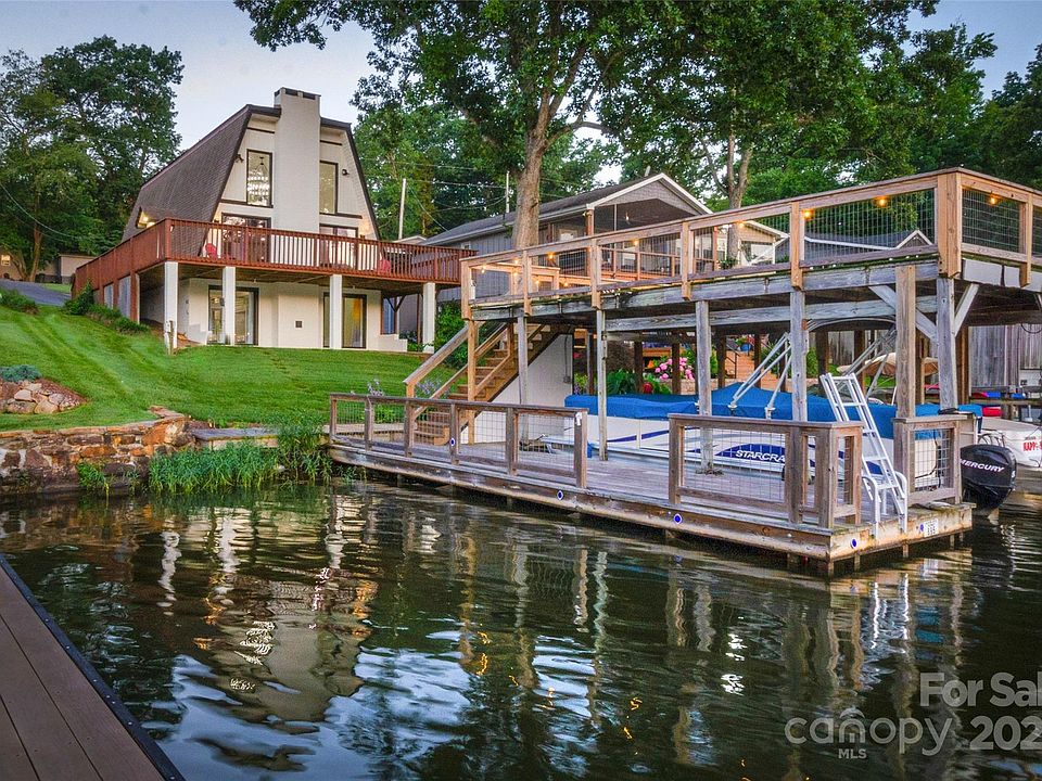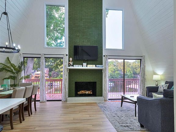 Discover this Unique Lakefront Opportunity. Inspired by the character of the home with low maintenance in mind, the current owners placed much care and thought into enhancing this home. The main scenic level features a Great Room with soaring 17 ft ceilings, a wall of windows that capture the natural light, a towering fireplace, dining area, open lake kitchen with breakfast bar, 2 guest bedrooms and full bath... Step out and enjoy the commanding lake view from the wrap-around deck..that embraces the home. Ascend to the upper level..a secluded owner’s haven w/walk in closet, en-suite full bath, & separate study area overlooking the great room.. The entertainment opportunities continue on the lake level offering a recreation/family room, additional guest bedroom and full bath. Walk out and relax or reminisce with family and friends on the lakefront covered patio. Just a few gentle steps away is your private pier, with its expansive upper party-sun deck. Two large covered boat slips and ample water depth accommodate both a ski boat and pontoon boat (10x26 & 10x24). The attached uncovered pier offers lake access whether fishing, kayaking, or using the swim ladder. Capture Sustaining Memories that will last a lifetime at this Sustaining Lake Value. All furnishings in the home are available for purchase. MULTIPLE OFFERS RECEIVED. Seller has requested that all interested parties submit their best offer by Tuesday 9/2/2025 at 5:00 PM EST.