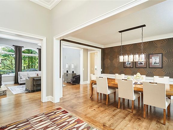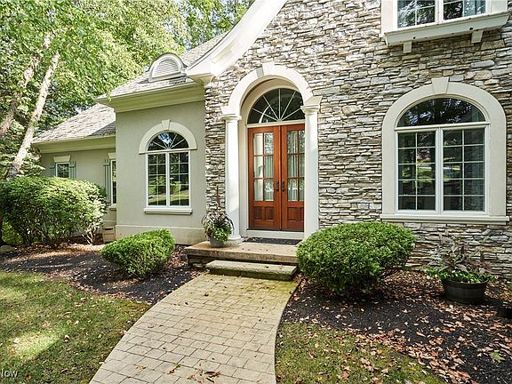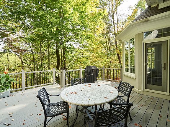 Nestled among the trees in Richfield's Glencairn Forest is this 5-bedroom 4.5 bath colonial with an updated light-filled kitchen, 2 first floor primary suites & lofty wooded views from every angle. Enter through gorgeous wood double doors to a dramatic foyer. A cozy den is to the left enclosed by french doors w gas FP & custom wood built-ins. The lovely & open dining room w maple floors, wainscoting & a large window showcasing private views. Beautiful sunken great rm w tray ceiling, floor to ceiling stone gas fireplace flanked by built-ins & large windows showcasing a private SE wooded view. The white cabinet kitchen was designed with these views in mind; it is surrounded by windows & filled with light. Crown molding, undercabinet lighting, large contrasting island, suite of stainless-steel appl., walk-in pantry, built-in bench in dinette & sitting area w a door leading to the composite deck ('21) that makes you feel like you are in a treehouse. Steps from the deck lead down to the side yard & patio area containing sliding glass doors to the walkout LL. There is a second 1st floor BR w an en-suite full bath. Generously sized at 20x16, the primary suite has a tray ceil., a door leading to the deck, large en-suite bath w granite counters, soaking tub, tile steam shower w frameless glass enclosure, 2 walk-in closets & WC. A laundry room w sink & a half bath round out 1st flr layout. Upstairs find 3 BRs, 2 that share a jack & jill bath & a 3rd w tented ceiling, skylight & large closet & updated carpet '22. The walkout LL feat. large living & sitting rooms w LVT floor & a slider leading to concrete patio. Partial kit. feat. granite counters, wall oven, refrigerator & wine cooler. Full bath w tile shower. This home also feat. a 24 x 26 home gym. Lovely 3-car garage w epoxy floor & stylish cabinetry. Newer HVAC & hot water tanks. Glencairn Forest offers walking trails, tennis court, playground & is close to parks, highways & the award-winning Revere school system.