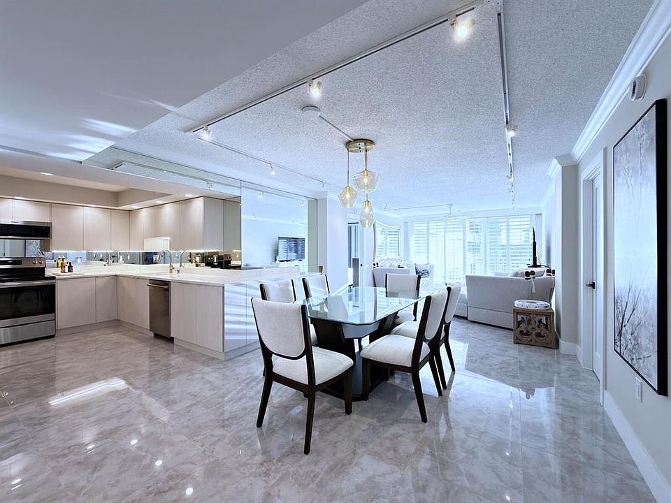 Experience this beautifully renovated turn-key residence, designed with modern finishes and impeccable attention to details. Just steps from the pool and the beach, this unit features a amazing open-concept kitchen that will delight culinary enthusiasts, complete with brand-new appliances and sleek countertops. Elegant bathrooms and stylish tile flooring flow seamlessly throughout, complemented by all-new furniture for a fresh, sophisticated look.Impact glass doors open each room to a spacious balcony, where you can soak up the sun, enjoy tropical breezes, and relax to the soothing sounds of fountains. The Barclay offers a true resort-like lifestyle with direct beach access and an array of amenities, including a fully equipped gym, tennis courts, a heated pool, BBQ facilities, saunas, a business center, game rooms, a lounge, 24/7 doorman, covered parking, and convenient drive through car-wash. Water, cable, and internet are all included in the rent. Just steps from the pool and beach!