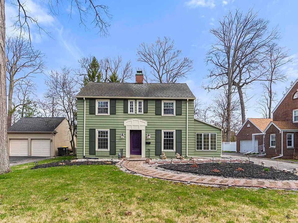 Welcome to the historic Wildwood Park neighborhood—known for its tree-lined streets, vibrant community events, and unique home improvement tax credits. This beautifully updated home offers a spacious living room with a cozy brick fireplace, a bright flex room with new vinyl flooring and a new roof, and an open kitchen with an island, breakfast bar, new dishwasher, and floating pantry shelves that flow into the formal dining room. An oversized family room adds versatility with a pass-through window to a bonus area with built-in cubbies and a convenient half bath. Upstairs are four generously sized bedrooms and two updated full baths, including a standout primary suite with vaulted ceilings, skylights, new windows, and a walk-in closet. The partially finished basement provides extra living space with a second fireplace, built-ins, and a dedicated laundry area. Outside, enjoy a partially fenced yard, a detached two-car garage, and a location directly across from the neighborhood creek. Recent improvements on this turn key home include refinished hardwood floors and stairs, a new water heater and AC condenser, a new washer and dryer, new gutters. Ideally located just minutes from Jefferson Pointe and 10 minutes from downtown, with easy access to dining and entertainment!