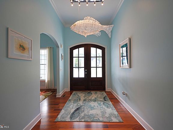 WELCOME HOME TO HAWKSEYE! Bright, beautiful, and impeccably kept, this single story home exudes effortless coastal style and loads of architectural highlights. The spacious floor plan is perfect for entertaining including a chef’s kitchen that is open to the family room, formal dining & living rooms, large owner's suite with his and hers walk-in closets, & luxury en suite bath, and three additional bedrooms, home gym, unfinished basement that offers plenty of storage, and so much more. The two screened porches overlook the partially wooded backyard with a patio that completes the relaxation package! Great location within the neighborhood, only steps to the community pool! Truly a must-see in an established east of route one community with easy access to Downtown Lewes and the Junction and Breakwater Trail to Rehoboth.