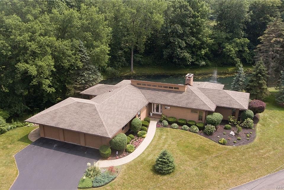 Conveniently located near schools, conveniences, major thoroughfares, and just 20 minutes to downtown Buffalo, yet more than 1600' off a private drive and surrounded by ponds and mature trees and landscaping, peace, serenity, and privacy abound upon your arrival at this immaculate, impeccably-maintained and lovingly cared for custom-built, open-concept contemporary, three bedroom, three and a half bathroom, walk-out ranch home. With just over 3000 square feet of thoughtfully designed, quality construction, there's ample space for both daily living and entertaining. The three car garage, multi-level deck, and mature landscaping round out the exterior highlights. This home was expertly sited to maximize natural light and the magnificent views that await from every window. Now $499,900!