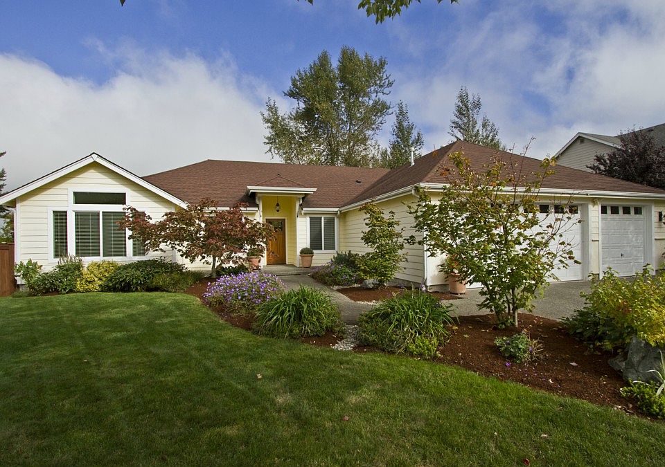 Sought after RAMBLER in The Meadows of Enumclaw. This open concept home has over 1,900 sq ft, 3 bedrooms, 3 car garage. French doors lead out to your covered wrap around porch in the private fenced back yard which includes a hot tub and tastefully landscaped. Gas range and island for the cook and entertaining or just being together. The master bedroom has French doors for easy access to the hot tub. The master bedroom also has a duel shower head. Schedule your showing today.