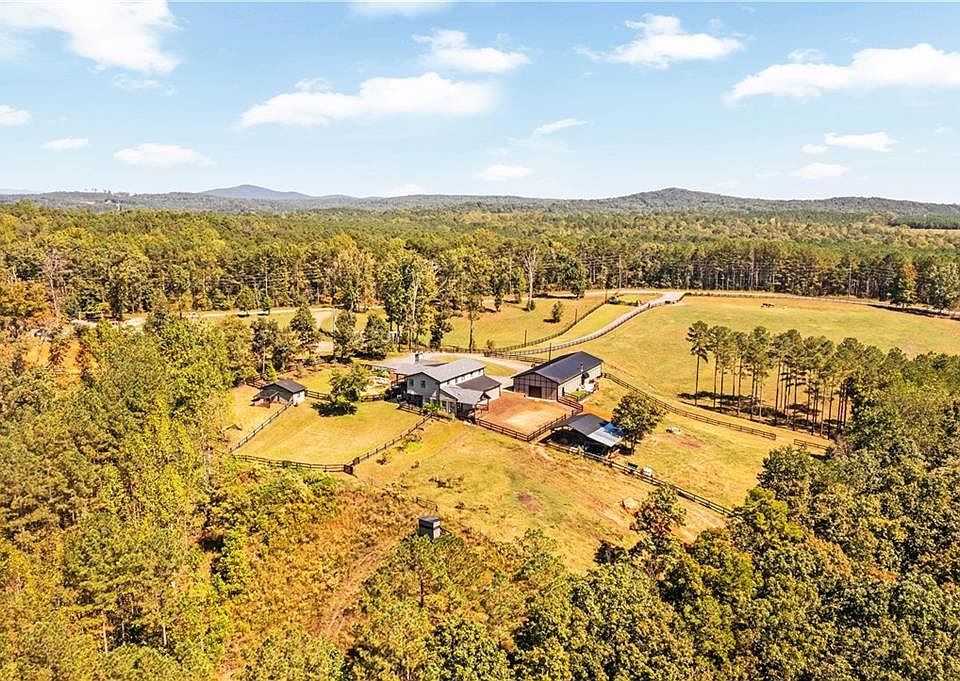 **One-of-a-Kind 12-Acre Farm Retreat** Welcome to a property that truly has it all - a rare blend of beauty, functionality, and endless possibilities. This 12-acre farm is unlike anything on the market, offering a custom home that combines charm, versatility, and breathtaking views of both sunrises and sunsets. Upstairs, you'll find a bright and cheerful 3-bedroom, 2-bath home featuring a white kitchen with granite countertops, stainless-steel appliances, and a cozy keeping room anchored by a stone fireplace. The spacious family room opens to multiple decks overlooking rolling pastures, perfect for morning coffee or evening gatherings as the sky puts on a show. The main-level in-law suite offers complete independence with its own kitchen, bedroom, and full bath - ideal for multi-generational living. A separate studio-style apartment provides even more flexibility, with a kitchenette, luxurious bath, and private covered deck overlooking the lush gardens - perfect for guests, extra family, or a home office. The massive workshop is a dream come true - fully set up for work, hobbies, or entertaining with four garage bays, mounted TVs, storage, and even a hot tub area. Equestrians will love the low-maintenance barn with four stalls, easy pasture access, auto-watering, hanging feeders, and stamped concrete for easy wash-outs. Three additional stalls, bringing total capacity to seven. The property is fenced and cross-fenced, complete with irrigation, a drainage system, and plenty of parking for trailers, equipment, or guests. Enjoy lush, green pastures, a peaceful creek, and private trails for horseback riding - and, with barrel racing next door for those who love the sport! And as if that weren't enough, there's a stunning pond and water feature with waterfalls, sitting rocks, and a beach-style area for relaxing on warm Georgia days. This property can be the ultimate family homestead, multi-generational compound, or income-producing farm with three potential Airbnb opportunities. Located at the foothills of the North Georgia mountains, you're just minutes from Ball Ground and Jasper for great dining, shopping, and small-town charm. ** There's truly nothing else like it - come see for yourself!