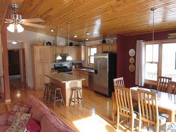 Beautiful, country living, home located on 7+ private acres only minutes from Duluth. This ranch style home is constructed with T&G pine vaulted ceilings, 6 panel doors, electric dual fuel with heated LL floor and an open floor plan. The main floor includes an open kitchen/dining/living room with gas fireplace and a wonderful deck for entertaining. The kitchen has a gas cook stove and hickory hardwood floors run throughout the kitchen and dining room area. The main floor also has the master bedroom w/ master bath, laundry room and ½ bath. Wildlife are common visitors to this quiet property. Snowmobile access to state trail from property and pet walking trail leads to Dog Park located on Riley Rd. A must see complete with privacy, a beautiful lot and a magnificent home close to Duluth! MN Power $187 monthly Propane (250 gallon tank) filled twice since 2009 (feeds fireplace & gas stove)