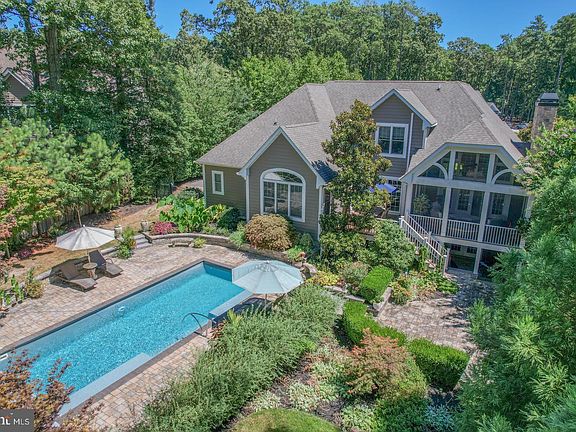 This stunning custom home is located in the private community of Hawkseye in Lewes, Delaware. The home boasts 5 spacious bedrooms and 4 modern bathrooms. The centerpiece of this magnificent property is the large heated pool, surrounded by extensive hardscaping and gardens. The oversized screened porch offers a perfect place to relax and enjoy the views of the pool and gardens. Inside, the home is equally impressive. The wood-burning fireplace in the great room provides a warm and inviting atmosphere. The first-floor owner's suite features a custom dressing area and walk-in closet. The geothermal heat system ensures comfortable temperatures year-round, while the oversize 2-car garage provides ample space for vehicles and storage. Other amenities of this home include an outdoor shower, mudroom, and laundry room. The full walkout basement has a plumbing rough-in, offering potential for future expansion. The home's location is ideal, with easy access to both Cape Henlopen State Park's pristine ocean beaches, the Delaware Bay beaches, and charming Historic Lewes. The extensive bike trail system also provides a great way to explore the local area. The Hawkseye community offers privacy and a qualified lifestyle, making this home the perfect place to enjoy all that Lewes, Delaware has to offer. The community amenities include a clubhouse, outdoor pool, and tennis courts.