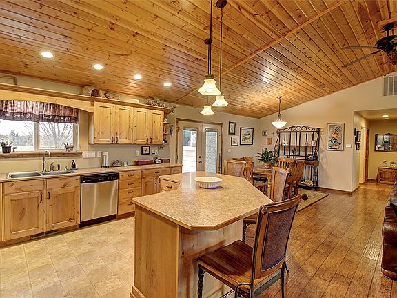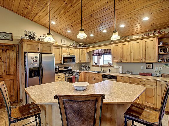 The interior charms with vaulted tongue and groove ceilings, complemented by alder kitchen cabinets, creating a warm and inviting atmosphere. The cozy ambiance of the propane fireplace adds to the home's allure. Enjoy the convenience of an attached one-car garage along with a 26 x 36 insulated shop/garage. Effortless lawn care is facilitated by underground sprinklers, while the shaded west patio offers an ideal spot to relish Montana's breathtaking sunsets. Call Jill Ursua 406 240 8386 or your real estate professional.
