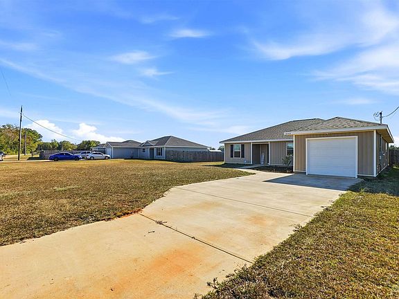 Built in 2022, this well maintained 3-bedroom, 2-bath home offers modern design paired with peaceful country living. The open concept floor plan features high ceilings, granite countertops, and a bright, airy layout ideal for everyday living and entertaining. Split floor plan aside, all bedrooms are generously sized with excellent closet space throughout. Situated on 1.5 acres, much of which naturally grows wild peanuts, the property is surrounded by quiet farmland, offering privacy and scenic views. Enjoy relaxing evenings on the covered back porch while still being conveniently located less than 30 minutes from NAS Whiting Field.