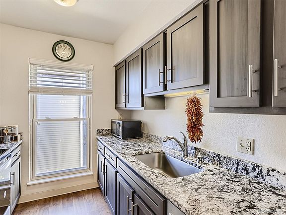 This adorable, updated, one bed one bath condo is looking for a new owner! Updated in 2020, it's turn key and easy living at your fingertips. As you walk in you're greeted by the stunning flooring, which makes the space feel warm and inviting. The kitchen is just to the left as you enter the condo: cute, with a large window, bringing in natural light to highlight the granite counter tops that really make this kitchen shine. The living room, just past the kitchen, is quite large, but feels gigantic with the towering, vaulted ceilings. Just off the living/dining area is a spacious balcony. it's also accessible from the bedroom. Just down the hall is an updated vanity and the full bath, which are both located directly across from the spacious bedroom. This condo is close to highways, major artery streets, making the rest of Aurora and the Denver MSA easily accessible
