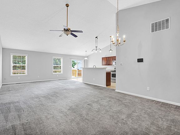 Stunning Ranch with Walk-Out Basement in Prime Location! This beautiful ranch-style home offers the perfect blend of comfort and style with an open floor plan, soaring vaulted ceilings, and a light-filled living space. The kitchen features sleek stainless steel appliances and flows effortlessly into the dining and living areas—ideal for everyday living and entertaining. The main level boasts three spacious bedrooms and two full baths, including a luxurious primary suite with a large walk-in closet, double vanities, a relaxing soaker tub, and a separate shower stall. Downstairs, the finished walk-out basement expands your living space with a full bath, an inviting entertainment area, and a home office that could easily convert to a fourth bedroom. Enjoy the outdoors in the beautifully fenced backyard, complete with a huge open deck perfect for gatherings or quiet evenings. Located in a desirable neighborhood with convenient access to the Southside and I-69, this home is a rare find!