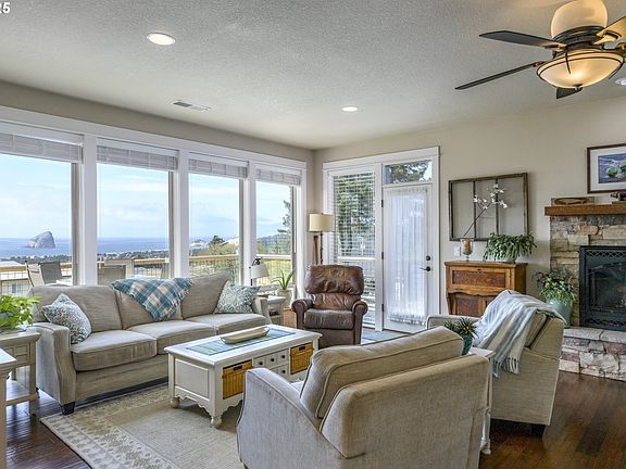 Must see NW contemporary home offers cozy living room with fireplace and main level primary bedroom both with stunning views of the ocean, Chief Kiwanda rock and the dune. Watch the dories come and go, surfers and whales from your deck. Open concept floor plan allows you to enjoy the views from all of the living space. Two additional bedrooms and a bathroom on the lower level. So much natural light and openess! This is a perfect home for a primary residence or a private vacation home.
