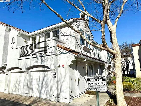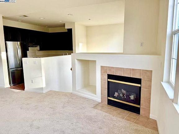 This move-in-ready two-story home features 2 bedrooms and 2 bathrooms, located in a desirable neighborhood with a plaza nearby and well-lit layout. The open-plan living and dining area offers carpeting, windows, and a cozy fireplace, perfect for relaxation. The kitchen is equipped with dark wood cabinets, tile countertops. Both bedrooms are bright and inviting with mirrored closets and clean carpeting, while the two updated bathrooms feature tiled flooring, large mirrors, and modern fixtures. Additional conveniences include a single-car garage, a laundry area complete with a washer and dryer, and easy outdoor access to a well-maintained driveway and shared courtyard. This home is ideal for those seeking comfort, style, and functionality.
