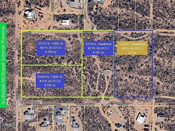 PRIME LAND! Rio Verde Foothills: 12.56 ACRES, 3 parcels, APN #219-36-073 A, B, C. Bordering the Scottsdale McDowell Sonoran Preserve, and down the street from the Tonto National Forest! Panoramic mountain views, towering Saguaro's, multiple building site potential. Perfect for your dream home estate, spec. homes, or ranch. Buy all or separate. Enjoy breathtaking, panoramic mountain views of 4 Peaks, Granite Mountain, and other majestic mountain ranges. Water wells and new homes nearby. Refer to parcel map under the document tab of the listing for lot layout.
