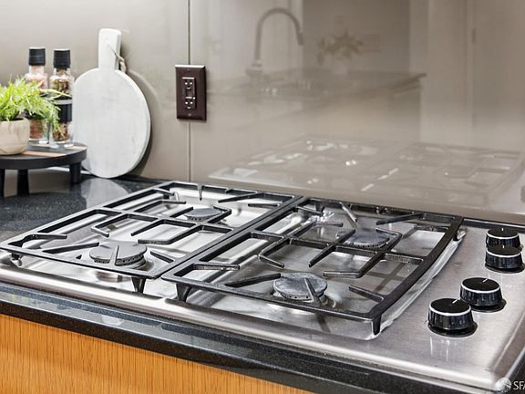 Large picture windowsMarble bath finishesOpen floor planBosch appliancesGas cookingGranite countertopsWood flooring