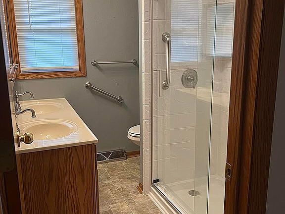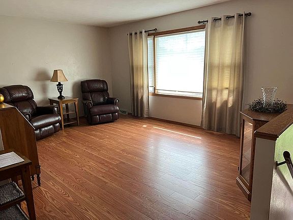 Mint condition split foyer with convenient location-just a short walk to school, ball fields, and park! This home offers two bedrooms on upper level with a large 3rd in lower level. 2 baths, nice sized kitchen, and beautiful addition to soak up the morning sunshine! Lower level family room with gas fireplace. Included are all kitchen appliances, washer, dryer, extra refrigerator, and shed. Newer A/C and furnace plus steel roof! 2 stall heated garage plus carport. Beautifully manicured lawn with perennials. Truly move-in ready!