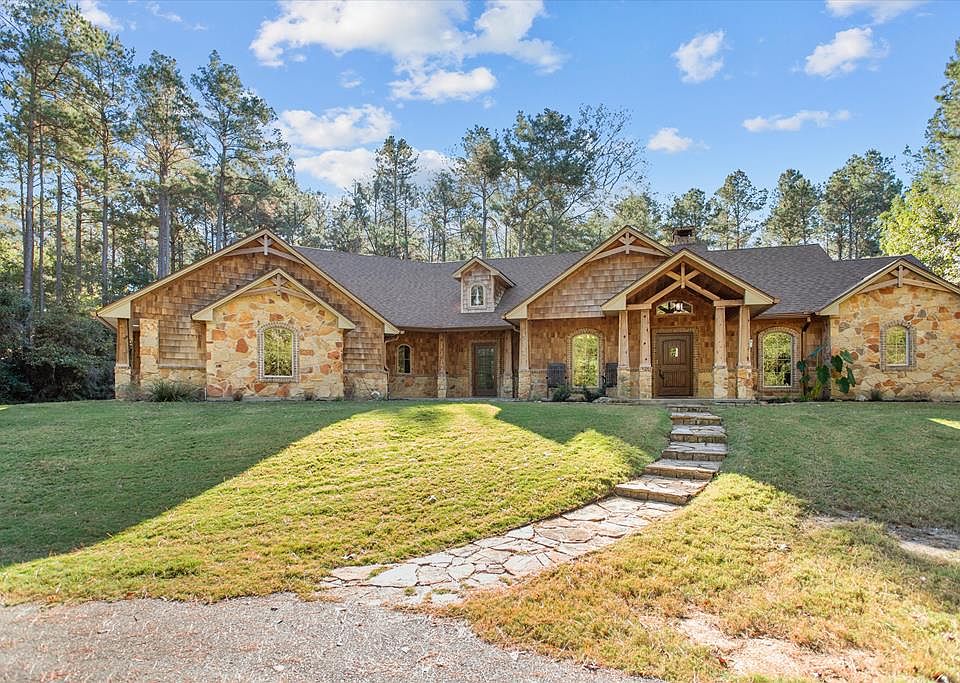 This beautiful custom-built 4-bedroom, 3.5-bath residence offers space and style in every detail. The heart of the home is an open-concept living, kitchen, and dining area that's perfect for gatherings. The kitchen is a chef's dream, featuring double islands, a large gas range, , granite countertops, a built-in ice maker, and a spacious walk-in pantry for plenty of storage. The split floor plan offers thoughtful privacy. Two bedrooms share a convenient Jack-and-Jill bathroom, while another bedroom with its own en-suite bath is located upstairs—ideal for guests or family. The spacious primary suite is a retreat of its own with a soaking tub, walk-thru shower, and generous closet space. Work from home in the dedicated office, then unwind outdoors by the sparkling pool and hot tub. The large covered patio creates the perfect setting for entertaining or relaxing year-round. A shop and private entrance add even more versatility and convenience. Located in the highly desirable Hudson ISD