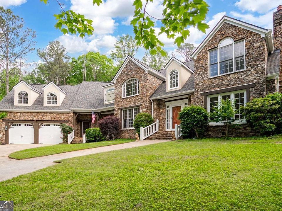 A peaceful retreat that feels worlds away, seclusion without sacrifice, enjoy the best of both worlds with privacy and proximity in perfect harmony. Tucked away in a quiet neighborhood off a private road along Clark Creek, with nearly eight acres, is a custom built estate ready for you to call home. Upon entering, you are greeted with custom architectural designs, reclaimed wood beams, and freshly finished wood flooring. The main level features an open concept kitchen and dining area that flows into the living room and office space. A 1,000 square foot bonus area, perfect for in-laws, teens, guest quarters or even a banquet hall is equipped with a second kitchen, full bath, access to the downstairs garage, and exterior entrance. Double staircases shine more of the homeCOs unique attributes with reclaimed wood and customized iron designs. The second level boasts two primary suites. A bridge-like walkway provides access to the first primary suite, with sitting area, and bathroom with separate soaking tub and shower. The second primary suite was used as a gym, with floor-to-ceiling mirrors installed, tons of space for equipment/furniture, and balcony access to the pool. An oversized secondary bedroom with sitting area and ensuite is situated across from the upstairs loft thatCOs flooded with natural light and fantastic property views. Two additional oversized bedrooms with ample closet space and access to a renovated hall bath round out the living spaces. The laundry room is conveniently located on the second floor, along with additional closets. The property is full of private amenities, including a rustic two-stall barn with new roof, fruit and nut orchard, peaceful pergola designed with swings and firepit, and gorgeous gunite pool with spa and sunning deck. Relax in the screened in patio, overlooking the pool area, year round. Additional exterior features include a batting cage, gagaball pit, expansive yard for playing and gardening, chicken coop and even a disc golf course. An immense second garage can serve as a workshop, storage for boats, tractors, four wheelers, and an oversized climate controlled garage on the main level. Recent updates include a brand new roof and garage doors (installed in December 2024), two water heaters (installed in 2021), and four 3-ton HVAC units (installed in 2020). For additional access to Clark Creek Pass homeowners can consider rebuilding a bridge, that was removed in 2022, for access through Oak Pointe Estates. This property has potential for a bed and breakfast, retreat center, equestrian use and so much more. Positioned along Clark Creek, it is simply stunning in every season! The estate is ideally located within three miles of lake Allatoona, and is convenient to highways 75 and 575. Less than thirty miles from Atlanta to the south, and a short scenic drive to visit the North Georgia mountains; an estate of this size and quality is hard to find. Appraised in December for over 2M, this property offers instant equity and endless possibilities. Motivated sellers are considering all reasonable offers!