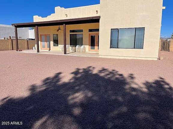 Territorial home on .25 acre lot , block wall, graveled front and backyard for easy upkeep. Three bedrooms. Office, music or computer room. Breakfast room. Breakfast bar. Three french exit doors with built in blinds. Large tile in all areas except for bedrooms. Master offers door to patio, step in shower, master closet, water closet and double sins. Split bedrooms. Only 14 homes in the cul de sac and no HOA. Three car garage with service door to backyard. Double gates to rear yard. Roof has been redone March 2024 and has a transferable ten year warranty