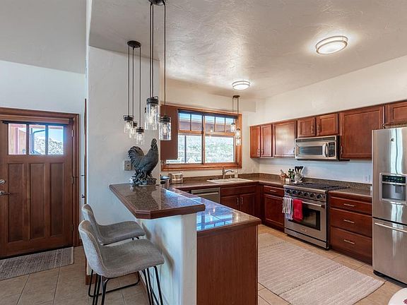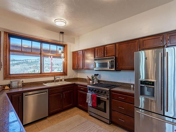 Beautiful Downtown Durango townhome located on Historic 3rd Avenue, just 3 blocks from Durango's Historical Main Avenue. The Boulevard's are arguably one of Durango's finest Downtown condo complexes. This coveted top floor south facing end unit condo offers comfortable living with views of the mountains and the Animas River. Featuring two bedroom, two full baths one level living with elevator access. The living-room/Kitchen area is open and bright. The master features an ensuite bath, and an additional private deck with mountain views. This is an ideal home for vacation getaways or full time living. Top floor units offer vaulted ceilings in the living room and lots of windows with natural light. Gas fireplace, central air conditioning stainless appliances, a new gas range. Separate pantry with washer and dryer. Secured Underground parking with two designated spots including a private storage unit for all your toys. HOA dues of $370/mo covers water, sewer, trash, exterior building maintenance, exterior window washing twice a year, pressure washing of the garage, walkways, elevator maintenance, snow removal and complex area landscaping.