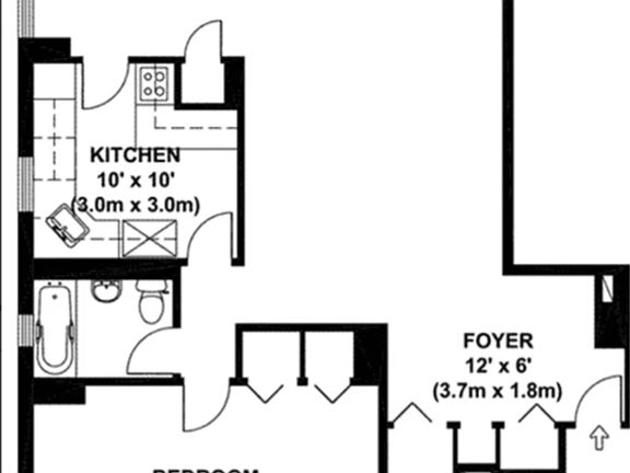 Very Large Junior 1 bedroom with dining alcove and very large living room plus windowed bathroom.