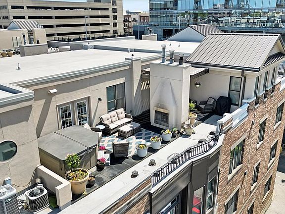 Check out this swanky Downtown Indy penthouse! This bright 2-bedroom, 2.5-bath rooftop condo offers views of the Cultural Trail from every angle. Open the French doors on the first floor and enjoy cooking in the open concept kitchen/living space. Grab your groceries at Whole Foods nearby or stroll 5 minutes to Mass Ave for fancy feasting. Cap off your day in the private rooftop hot tub next to the cozy outdoor fireplace. Have friends over to enjoy the custom bar upstairs just off of the terrace and save them a trip home by offering them the private guest room. An entertainers dream! Bonus: 2 parking spots in the underground, climate-controlled parking garage, complete with bike racks and electric car charging.