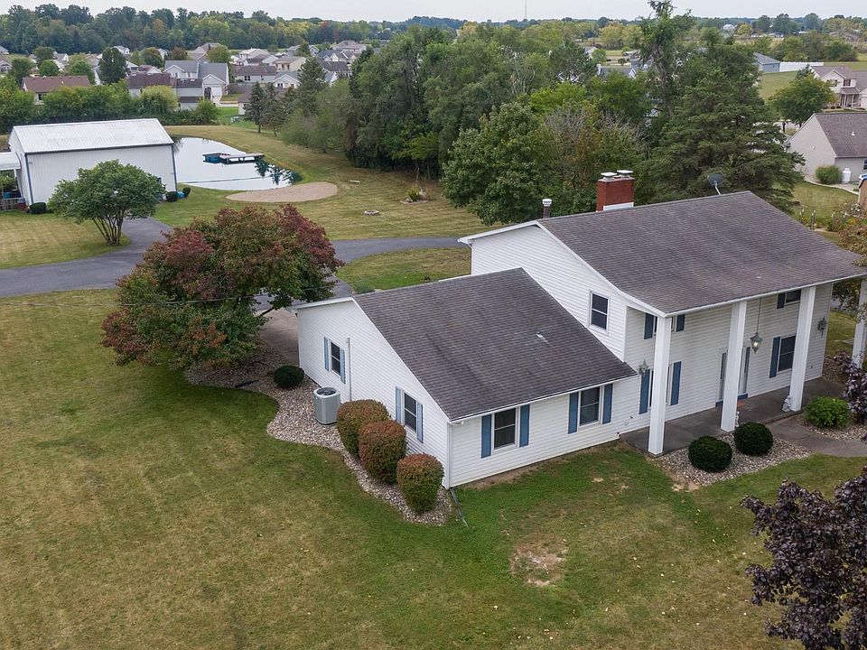 This property is very unique! As you pull up the wrap around drive, you will be amazed at the exterior features of this colonial home. Over the last several years, the owner has completely updated the interior. Kitchen has been updated with new cabinets, granite counter tops, an island (6 bar stools stay), new appliances and newer flooring. The open concept allows the kitchen to flow into the family room w/ a wood burning fireplace and an additional living room. Also, off the kitchen there is the large laundry room w/ cabinets, vanity, and a 1/2 bath. The 1st bedroom ensuite boasts an oversized walk-in closet, double vanity and a ceramic shower. On the 2nd floor there are 4 additional bedrooms and an additional full bathroom. Other updates include new light fixtures, plumbing fixtures, ceiling fans in every room, paint and flooring. Do you like to entertain? No worries, the basement offers over 1000 finished square feet and includes a 30x19 rec room, 12x11 bonus room, lower-level kitchen area (10x10) with cabinets, counter space, and a refrigerator. Basement also includes a 1/2 bath which is plumbed for a stand-up shower if new owner would like to install, or it could be removed and left as a 1/2 bath. If you have a passion for the outdoors, you will fall in love with the 3.18-acres, approximate 3/4 acre fully stocked pond (stocked with largemouth, smallmouth, blue gill, catfish, and carp) and the 30x40 outbuilding with an RV/Camper carport (this is in addition to the 2-car attached garage). Pier, floating raft, and pond supplies included. Property is on city water and city sewer, however there is a working well located on the south side of the outbuilding for gardening, watering the lawn or adding water to the pond. Don't miss out on this one!!!