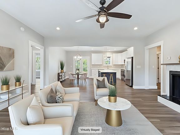 Fresh, flawless, and brand new! Skip the construction wait, avoid building costs, and be the very first to enjoy every pristine finish in this just-completed custom home. Thoughtfully designed with quality construction throughout, this home offers a stylish kitchen with soft-close cabinetry, quartz countertops and GE stainless appliances, an inviting living room with cozy gas fireplace, and a spacious primary suite with two walk-ins plus a spa-inspired bath featuring dual vanities, a freestanding soaking tub with Roman filler faucet and a beautifully tiled walk-in shower. Brushed nickel Moen plumbing fixtures with a lifetime warranty, a two-car garage with 12' ceilings, utility sink, full walk-up attic storage, and convenient hose bibs on each side of the home and porches add function to the beauty. Enjoy privacy on nearly a half-acre with peaceful views of mature oak trees from the covered front and rear porches.