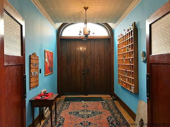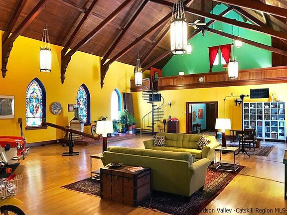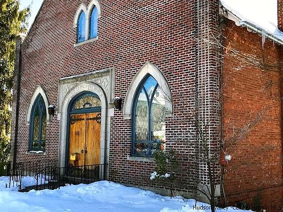 You will be awestruck by this magnificent Gothic brick church circa 1928. Formerly St Paul's Lutheran Church, it has been thoughtfully converted into a stunning single-family home with more than 4000 square feet of living area and a 1000-square-foot studio and stage. Fully renovated in 2003 by two local artists, this sturdy brick structure was painstakingly preserved while being adapted into a truly unique live workspace. From the moment you enter through the 4-inch-thick, 8-foot-high double oak doors and into the main sanctuary hall, with its soaring 40-foot-high cathedral ceiling, supported by 6 massive Gothic scissor trusses and adorned with 8 original Tudor Gothic pendant light fixtures, you know every effort has been made to protect the architectural integrity of this structure. The first-level sanctuary hall currently comprises the main living area, including the living room, dining room and two bedrooms. The larger of the two bedrooms is in the former pipe organ loft, which overlooks the entire main sanctuary hall, which also features the original stained glass windows. There are beautifully preserved hardwood floors, which are oak on the main level and maple on the lower level. The walk-out lower-level church hall currently includes the kitchen, family room, bathroom and studio. This level features spectacular 11-foot-high tin ceilings and is above grade on three sides, allowing for the rooms to be flooded with sunlight and offering on grade access to both sides of the building. The family room just off the kitchen accesses a beautiful and spacious side yard and garden area with a handy street-level exterior staircase. There have been several upgrades to the building's systems in the past ten years, including three new forced air natural gas heating systems, a new roof and the cathedral ceiling insulation. There are two solar thermal units on the exterior back wall of the main sanctuary hall, which supplement the forced air heating system and provide additional efficiency. The property is zone R-2 residential two-family and has many uses allowable with a special use permit.