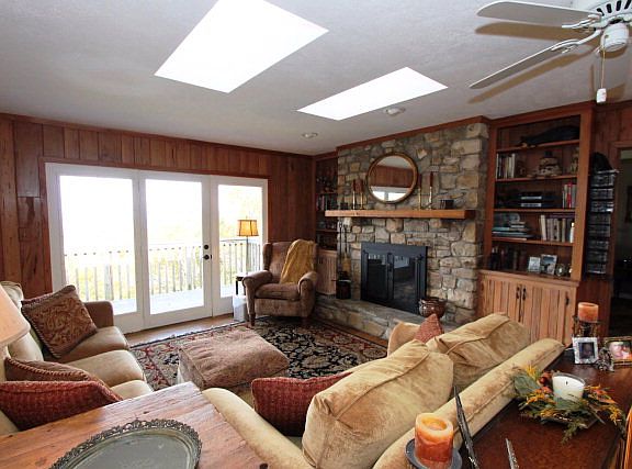 VIEW AND LOCATION! This mountain cottage has great curb appeal. Major renovations include: upstairs & downstairs renovated by KBI in 2003, stone retaining wall in 2013, new appliances in 2007, new hot water heater in 2015. Attractive stone wall and garden outside kitchen window. High end built-ins in master and family room. Open floor plan and open to the VIEW. Wet bar and wine refrigerator in family room. Built in office also in spacious family room. Laundry room on main level providing one level living for all necessities. Screened porch and multiple open decks. IPE decking. This home has it all for a very affordable price. Must see!